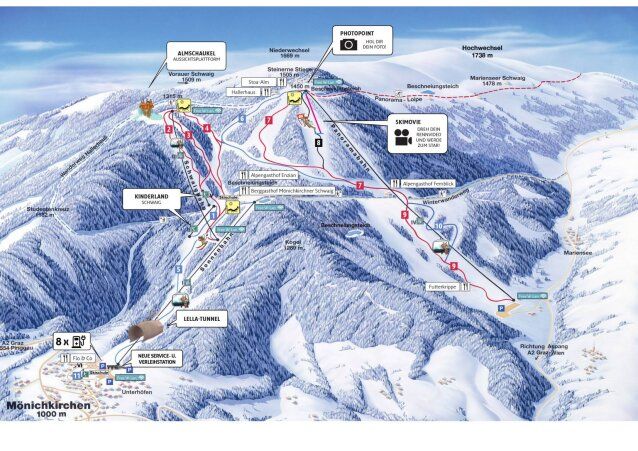 A Mönichkirchen - Mariensee síterepen az utóbbi években megvalósult három új négyszemélyes ülőliftnek, a kiszélesített pályáinak köszönhetően az egyik legjobb infrastruktúrájú határközeli, rendkívül családias síterep.