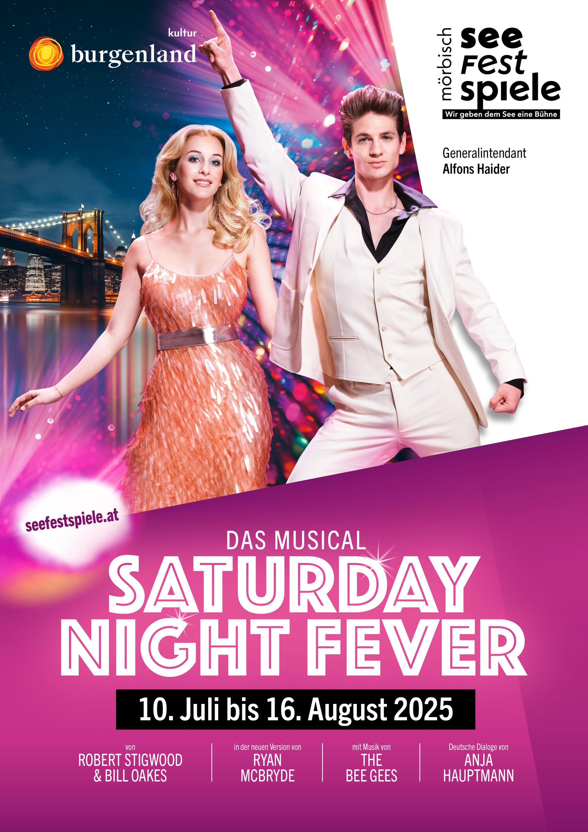 2025 nyarán a "Saturday Night Fever - The Musical" először hozza el a diszkólázat Mörbisch Víziszínpadjára. Robert Stigwood és Bill Oakes jól ismert musicalje alapján, a Bee Gees zenéjével kísérve a látogatók különleges élményre számíthatnak.